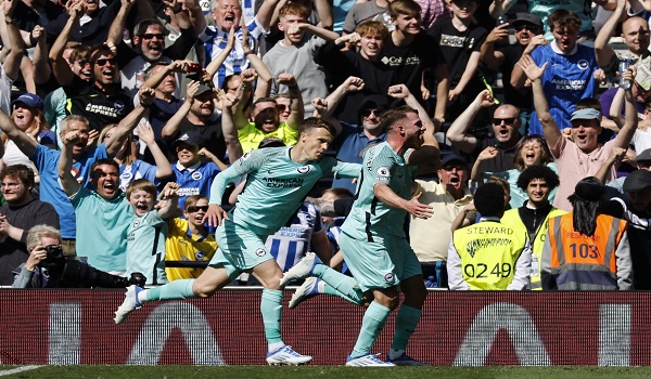 (Brighton meraikan gol jaringan Trossard/AFP)