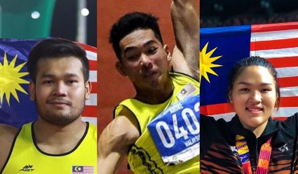 (Dari kiri – Muhammad Irfan atlet lempar cakera lelaki, Andre Anura atlet lompat jauh lelaki negara dan Queenie Ting Kung Ni atlet lempar cakera wanita/FOTO fail)