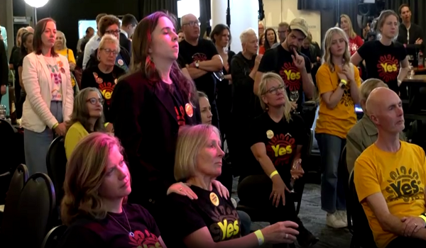 Pemimpin kempen Yes23 dan sukarelawan berkumpul di bahagian barat, Sydney untuk menyaksikan keputusan itu dengan 45% undian dikira bagi seluruh negara, undian “Tidak” mendahului “Ya” sebanyak 57.35% kepada 42.65%.