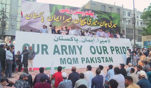 KARACHI, 9 Mei- Beratus-ratus penduduk di Karachi menghadiri perhimpunan di bandar itu untuk menunjukkan sokongan kepada tentera Pakistan.