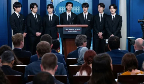 (Kumpulan BTS ketika berucap di Rumah Putih/ AFP)