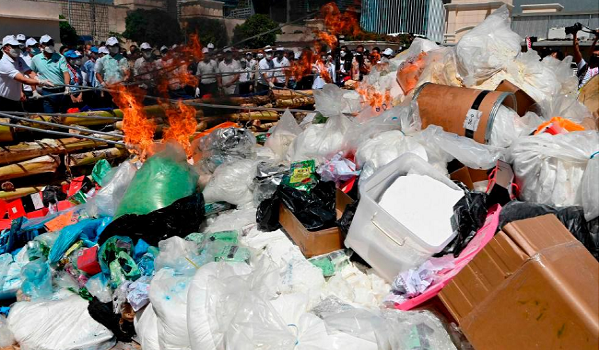 Pendakwaraya Mahkamah Perbandaran Phnom Penh, Chrreng Khmao berkata, kira-kira 6.25 tan metrik dadah dan bahan terlarang meliputi heroin, kokain, methamphetamine, ekstasi, cathinone, ketamin dan nimetazepam telah dimusnahkan.
