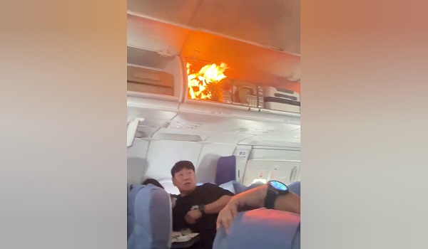 Gambar yang tular dan disiarkan oleh portal media, Jimu News menunjukkan api jelas kelihatan dari ruang penyimpanan atas kepala serta kepulan asap hitam di dalam kabin, sementara seorang penumpang dilihat cuba memadamkan api.