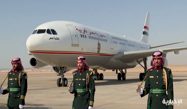 Rakaman menunjukkan pesawat yang membawa pemimpin berkenaan mendarat sebelum Presiden Mesir turun dan disambut Putera Mahkota Arab Saudi.