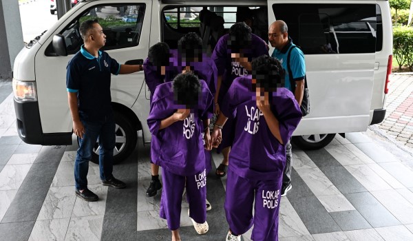 Kesemua suspek yang berusia berusia 15 hingga 17 tahun itu tiba di perkarangan Mahkamah Kuala Terengganu, pukul 10.03 pagi tadi.