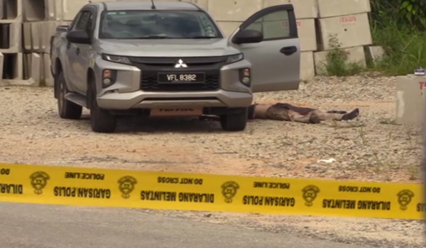 Mangsa yang merupakan seorang kontraktor berasal dari Kuala Lumpur itu ditemui terbaring di atas tanah kira-kira pukul 3.15 petang, di sebelah pintu penumpang hadapan kenderaan pacuan empat roda miliknya.