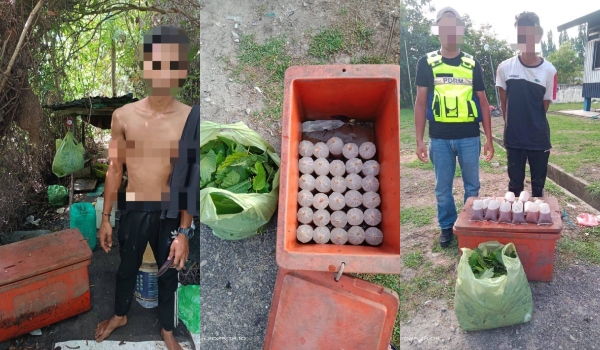 Komander Briged Tenggara PGA, Datuk Nik Ros Azhan Nik Ab. Hamid berkata, pemeriksaan lanjut menemukan 30 bungkus air ketum yang telah diproses dan tiga kilogram daun ketum di sekitar lokasi penahanan.