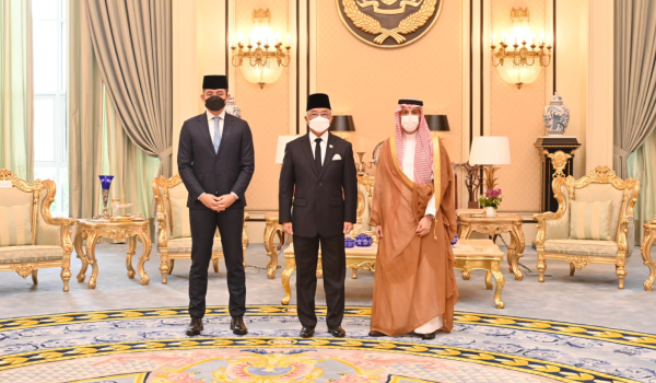 KUALA LUMPUR, 8 Jun- Yang di-Pertuan Agong, Al-Sultan Abdullah Ri’ayatuddin Al-Mustafa Billah Shah berkenan menerima menghadap kunjungan hormat Menteri Luar Arab Saudi, Putera Faisal bin Farhan Al Saud di Istana Negara.