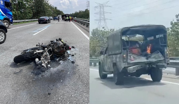 “Impak perlanggaran yang kuat telah menyebabkan motosikal terbakar di tengah laluan jalan dan motosikal turut mengalami kerosakan di pelbagai bahagian,” katanya menerusi kenyataan hari ini.