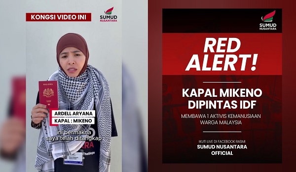 “Sebarkan video ini seluasnya! Kerana jika kalian menonton video ini, bermakna seorang delegasi Malaysia di Mikeno iaitu: 1. Nurul Hidayah (Ardell Aryana) sudah ditahan secara tidak sah oleh rejim Israel di perairan antarabangsa,” menurut kenyataan itu.