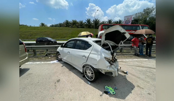 Ketika tiba di lokasi kejadian, kereta dipandu bapa mangsa hilang kawalan menyebabkan terbabas dan melanggar besi pembahagi jalan.