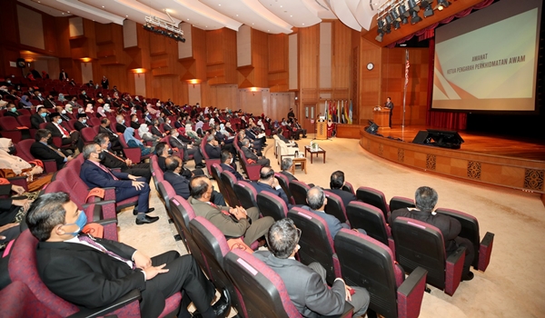 Beliau turut menzahirkan penghargaan kepada semua penjawat awam atas usaha dan komitmen yang tinggi serta berterusan dalam memastikan sistem penyampaian perkhidmatan awam terus berada di landasan terbaik sekali gus memberi manfaat yang signifikan kepada negara demi kesejahteraan rakyat.