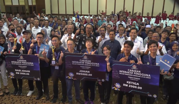 bergambar dengan para pemenang Cabaran Interaktif Pengguna, Kelab Pengguna Sekolah