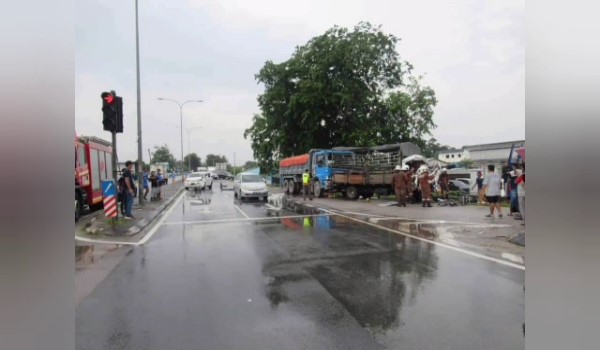 Setibanya di lampu isyarat, sebuah lori hilang kawalan, lalu melanggar lori dipandu mangsa.