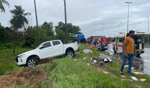 “Siasatan awal mendapati kereta berkenaan dipercayai terbabas di bahu jalan sebelum sebuah motosikal yang cuba membantu turut dirempuh lori, disusuli pelanggaran dengan kenderaan pacuan empat roda dan sebuah motosikal lain