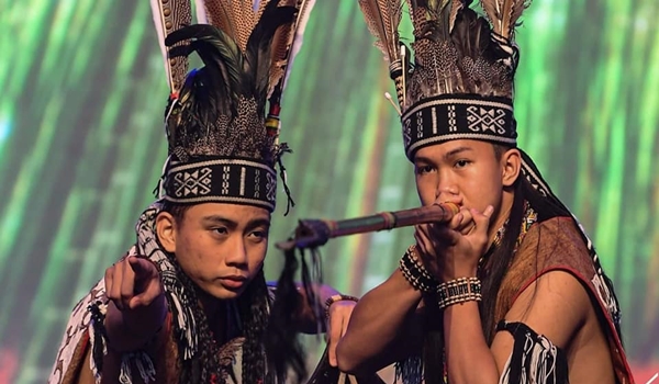 (Penari kebudayaan menunjukkan aksi menyumpit sempena