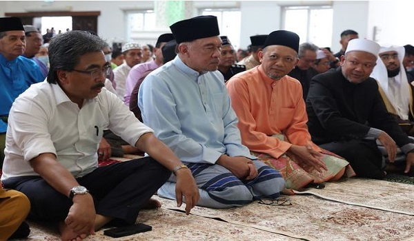 (Perdana Menteri, Datuk Seri Anwar Ibrahim (dua, kiri) hadir ke Masjid Jamek Kampung Baru
