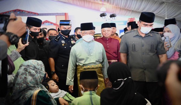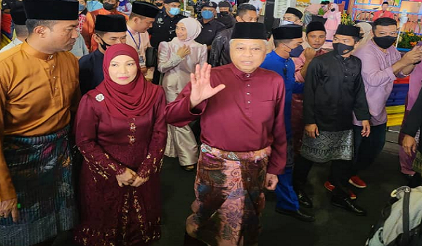 Ismail Sabri yang memakai baju melayu berwarna ‘maroon’ lengkap bersongkok dan bersampin itu tiba di khemah utama Laman Sari iaitu tapak majlis rumah terbuka itu berlangsung, pada pukul 10 pagi bersama isterinya Datin Seri Muhaini Zainal Abidin dan terus menyantuni para tetamu.