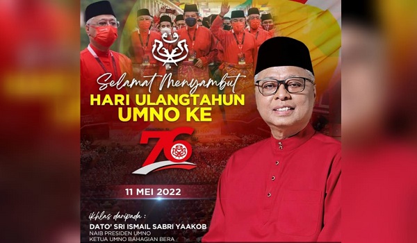 Bersempena sambutan ulang tahun UMNO ke-76 hari ini, Ismail Sabri yang juga Naib Presiden parti itu berharap agar UMNO terus kukuh memayungi dan melindungi seluruh masyarakat di negara ini.