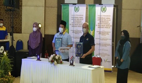KANGAR, 21 Jun – Bagi menyemarakkan lagi Pembudayaan 3R, SWCorp Negeri Perlis telah mengorak langkah dengan mengambil inisiatif menjalinkan kerjasama strategik bersama Jabatan Hal Ehwal Agama Islam Negeri Perlis (JAIPs) melalui Program Amal Jariah melalui barangan kitar semula Masjid di seluruh Perlis.