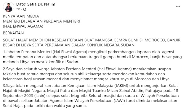 (Tangkap layar kenyataan Dr. Mohd Na’im Mokhtar)
