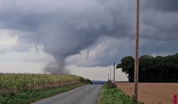 Menerusi video yang dirakam orang awam, puting beliung dilihat berlaku berhampiran jalan raya sekitar Perancis. – REUTERS