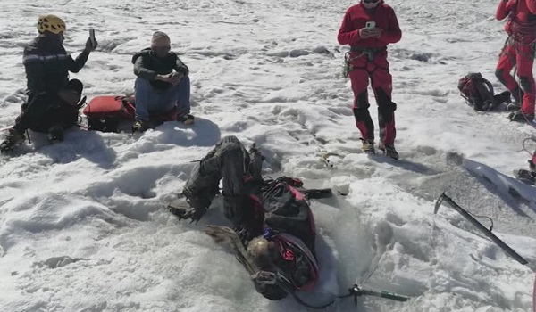 Polis Peru berkata mayatnya akhirnya terdedah oleh pencairan ais di banjaran Cordillera Blanca di Andes.