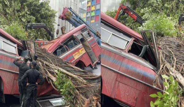 “Bas itu berhenti di hentian Kollupitiya untuk mengambil lebih ramai penumpang apabila pokok itu tumbang di atasnya.”