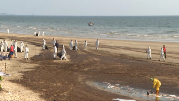 BANGKOK, 30 Januari- Pantai Mae Ramphueng, Thailand diisytihar kawasan bencana, selepas tumpahan minyak dari saluran paip dasar laut yang bocor merebak hingga ke pesisiran pantai itu.