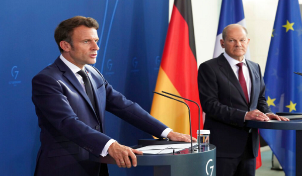 (Presiden Perancis Emmanuel Macron (kiri) dan Canselor Jerman Olaf Scholz