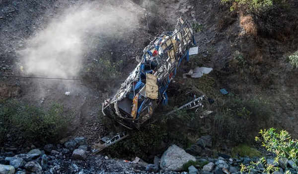 Bas itu terbabas dari lebuh raya di wilayah Ayacucho Andean pada waktu subuh, terbalik dan menjunam ke bawah cerun kira-kira 200m, Jhonny Rolando Valderrama,