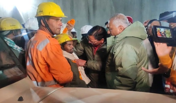 Orang pertama yang dipindahkan, seorang lelaki pendek memakai jaket musim sejuk kelabu gelap dan topi keras kuning, diikat dan disambut dalam gaya tradisional India di dalam terowong oleh Ketua Menteri Negeri Pushkar Singh Dhami dan Timbalan Menteri Lebuh Raya Persekutuan V.K. Singh.