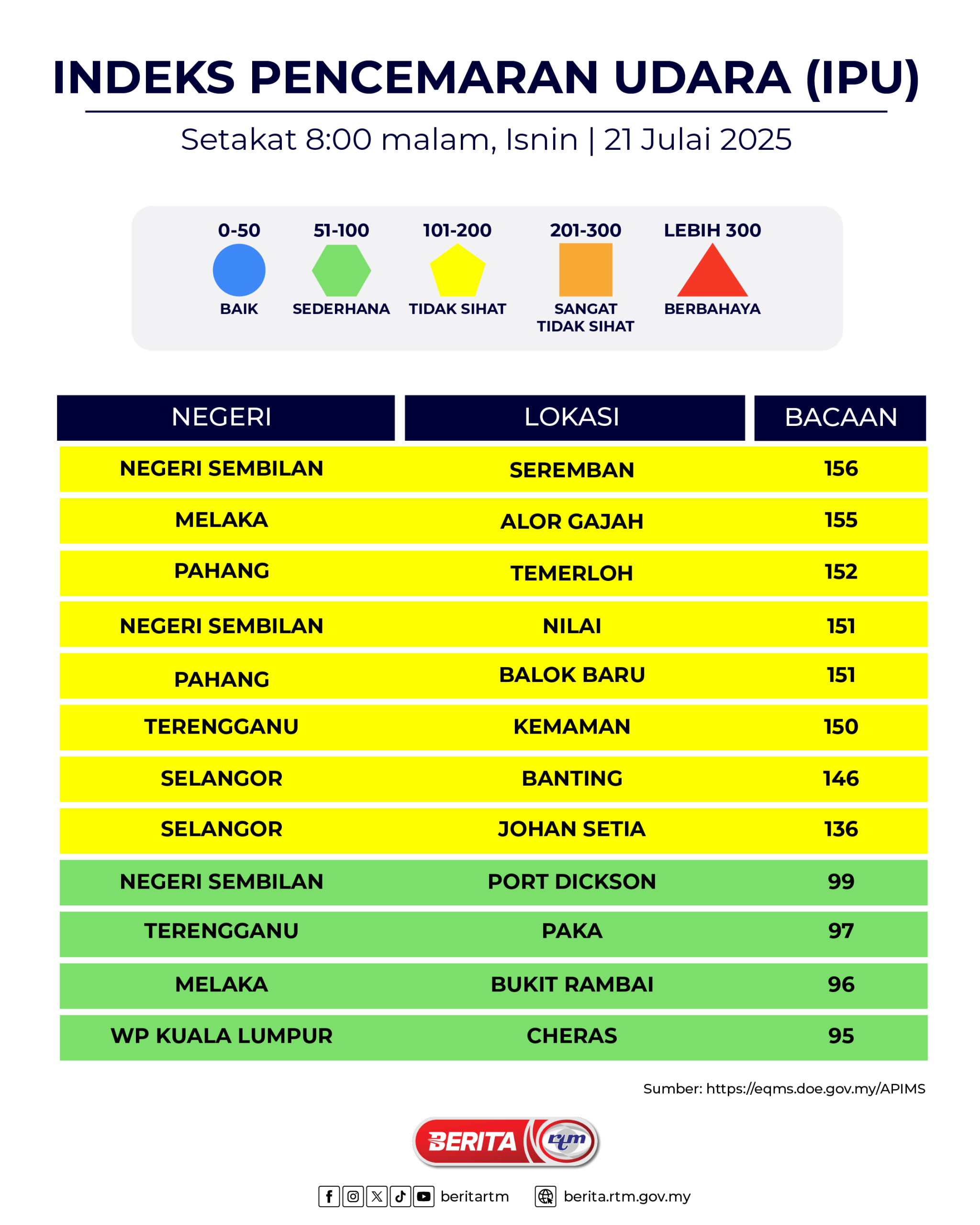 Utama Infografik INDEKS PENCEMARAN UDARA (IPU) INDEKS PENCEMARAN UDARA (IPU)21/07/2025 | 7:46 pmInfografik Kongsi berita Share on X (Twitter) Share on Facebook Share on WhatsApp Share on Telegram Berita sebelumnyaINDEKS PENCEMARAN UDARA (IPU)Berita seterusnya210725 INDEKS PENCEMARAN UDARA (IPU) 2:00 PETANG Makan Sihat, Hidup Sihat: Bagaimana Ajinomoto (Malaysia) Berhad Membentuk Gaya Hidup Lebih Sihat di Malaysia PALING POPULAR Syiling emas TMM 2026, lambang kerjasama strategik kerajaan-swasta Nasional Ringgit dibuka rendah berbanding dolar AS, tinggi berbanding mata wang utama Ekonomi