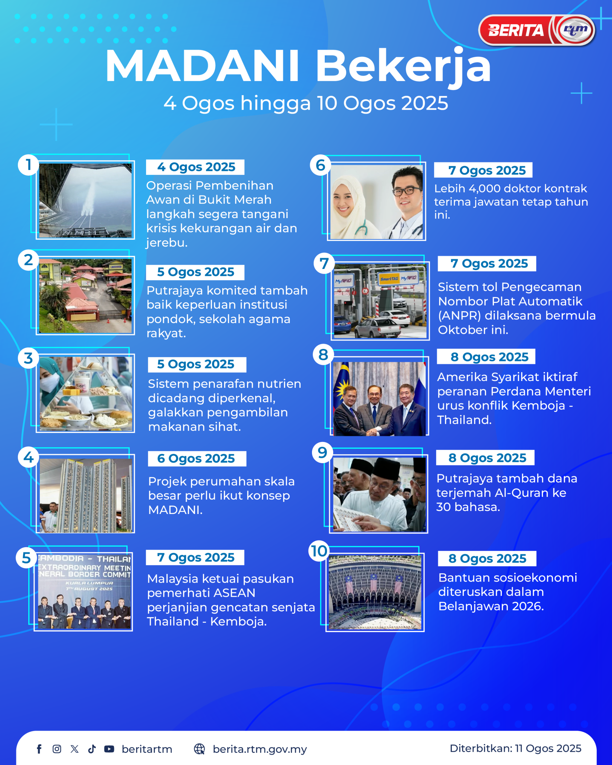 Utama Infografik MADANI BERKERJA 4 OGOS – 10 OGOS 2025 MADANI BERKERJA 4 OGOS – 10 OGOS 202511/08/2025 | 10:27 amInfografik Kongsi berita Share on X (Twitter) Share on Facebook Share on WhatsApp Share on Telegram Berita sebelumnyaHarga runcit produk petroleum bagi tempoh 14 – 20 ogos ...Berita seterusnyaPENYERTAAN FILEM-FILEM MALAYSIA KE FESTIVAL FILEM INDONESIA DAN DUNIA ISLAM ... Makan Sihat, Hidup Sihat: Bagaimana Ajinomoto (Malaysia) Berhad Membentuk Gaya Hidup Lebih Sihat di Malaysia PALING POPULAR [TEST] Teh Tarik+Berita – Dekat, Senang & Masuk Akal! BES+ [Test: Infografik berita] Infografik