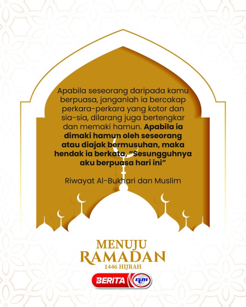 Utama Infografik MENUJU RAMADAN 1446 HIJRAH -3 MENUJU RAMADAN 1446 HIJRAH -328/02/2025 | 3:25 pmInfografik Kongsi berita Share on X (Twitter) Share on Facebook Share on WhatsApp Share on Telegram Berita sebelumnyaPolis tumpaskan sindiket dadah beserta rampasan bernilai RM2.5 jutaBerita seterusnyaRANG UNDANG-UNDANG (RUU) MAJLIS MEDIA MALAYSIA (MMM) 2024 DILULUSKAN DEWAN ... PALING POPULAR Muzium Budaya Borneo Angkat Nama Sarawak Di Peringkat Global Dalam Negeri Tiada siapa terkecuali dalam tindakan antirasuah -PM Nasional