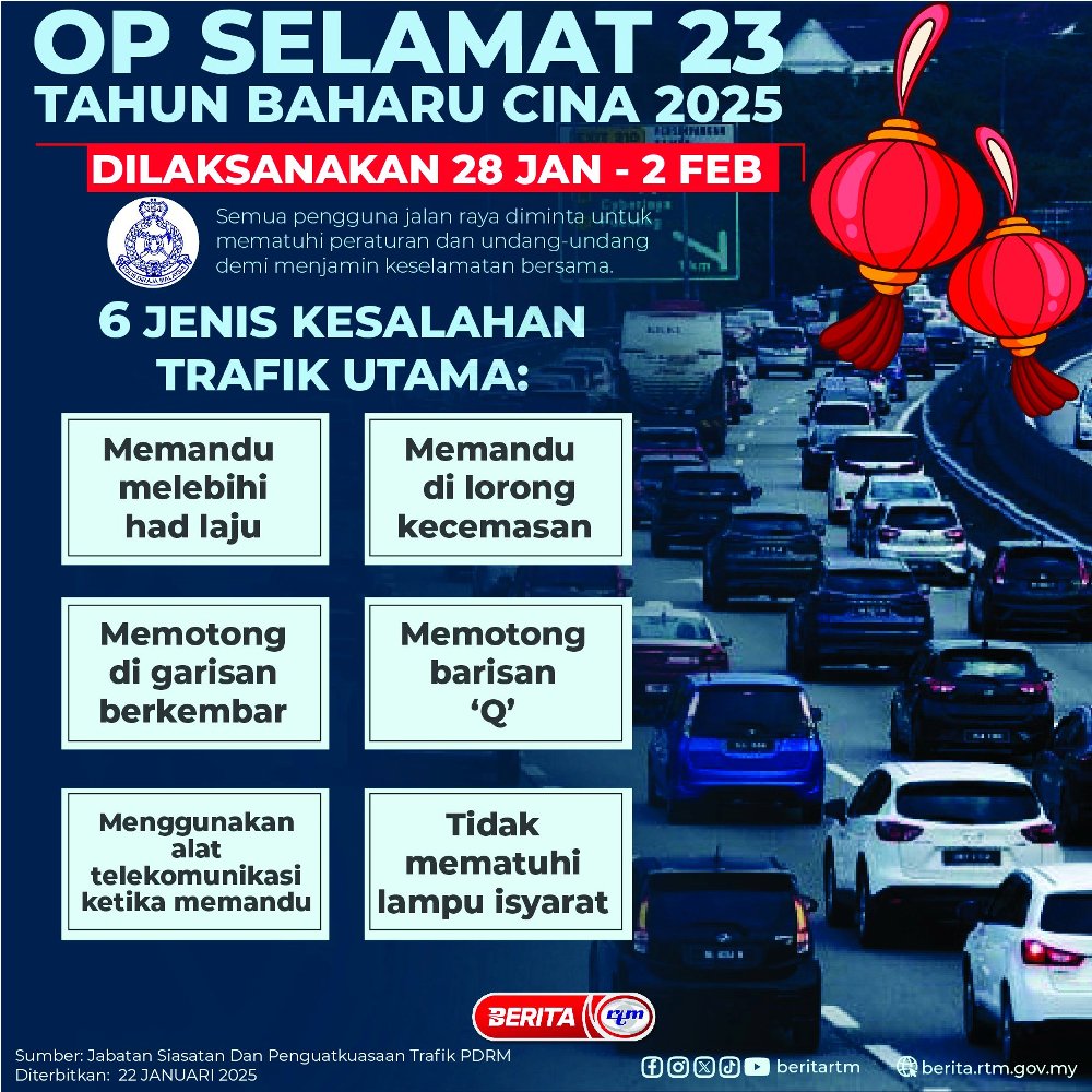 Utama Infografik OP SELAMAT 23 SEMPENA TAHUN BAHARU CINA 2025 OP SELAMAT 23 SEMPENA TAHUN BAHARU CINA 202522/01/2025 | 10:47 amInfografik Kongsi berita Share on X (Twitter) Share on Facebook Share on WhatsApp Share on Telegram Berita sebelumnyaDialogue, pragmatic collaboration remain key to international relationsBerita seterusnyaPengasuh mengaku tidak bersalah aniaya anak asuhan hingga mati PALING POPULAR Muzium Budaya Borneo Angkat Nama Sarawak Di Peringkat Global Dalam Negeri Tiada siapa terkecuali dalam tindakan antirasuah -PM Nasional