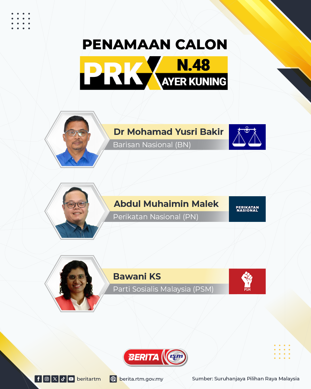 Utama Infografik PENAMAAN CALON PRK N.48 AYER KUNING PENAMAAN CALON PRK N.48 AYER KUNING12/04/2025 | 11:31 amInfografik Kongsi berita Share on X (Twitter) Share on Facebook Share on WhatsApp Share on Telegram Berita sebelumnyaPROFIL CALON PRK N.48 AYER KUNINGBerita seterusnyaPERKHIDMATAN PINTAR PUSAT SEBARAN MAKLUMAT NASIONAL (NADI) AYER KUNING Makan Sihat, Hidup Sihat: Bagaimana Ajinomoto (Malaysia) Berhad Membentuk Gaya Hidup Lebih Sihat di Malaysia PALING POPULAR Syiling emas TMM 2026, lambang kerjasama strategik kerajaan-swasta Nasional Ringgit dibuka rendah berbanding dolar AS, tinggi berbanding mata wang utama Ekonomi