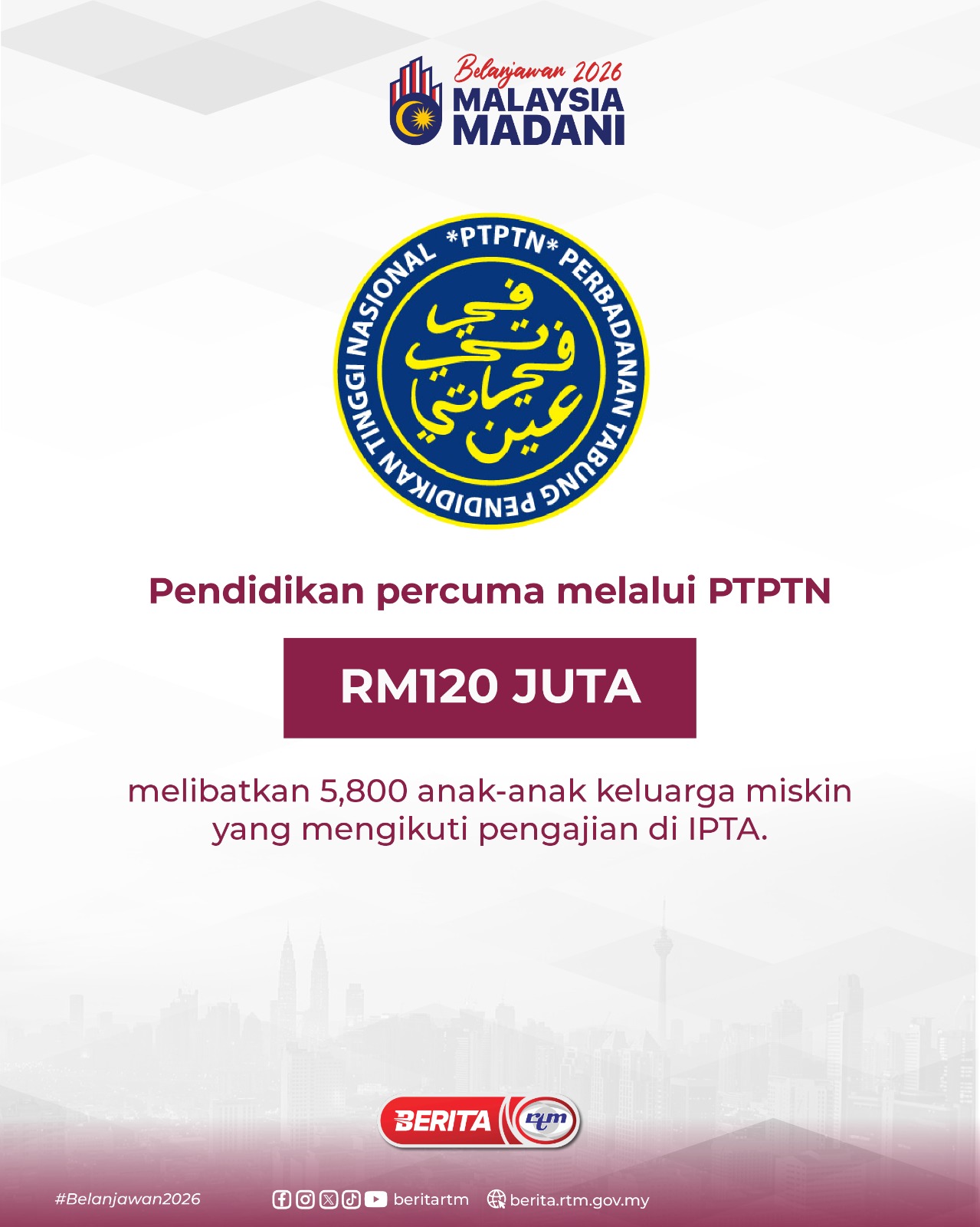 Utama Infografik PENDIDIKAN PERCUMA MELALUI PTPTN PENDIDIKAN PERCUMA MELALUI PTPTN10/10/2025 | 6:30 pmInfografik Kongsi berita Share on X (Twitter) Share on Facebook Share on WhatsApp Share on Telegram Berita sebelumnyaHAD PENGELUARAN KWSP UNTUK IBADAT HAJI DITINGKATKANBerita seterusnyaPEMBANGUNAN SUKAN NEGARA Makan Sihat, Hidup Sihat: Bagaimana Ajinomoto (Malaysia) Berhad Membentuk Gaya Hidup Lebih Sihat di Malaysia PALING POPULAR [TEST] Teh Tarik+Berita – Dekat, Senang & Masuk Akal! BES+ [Test: Infografik berita] Infografik
