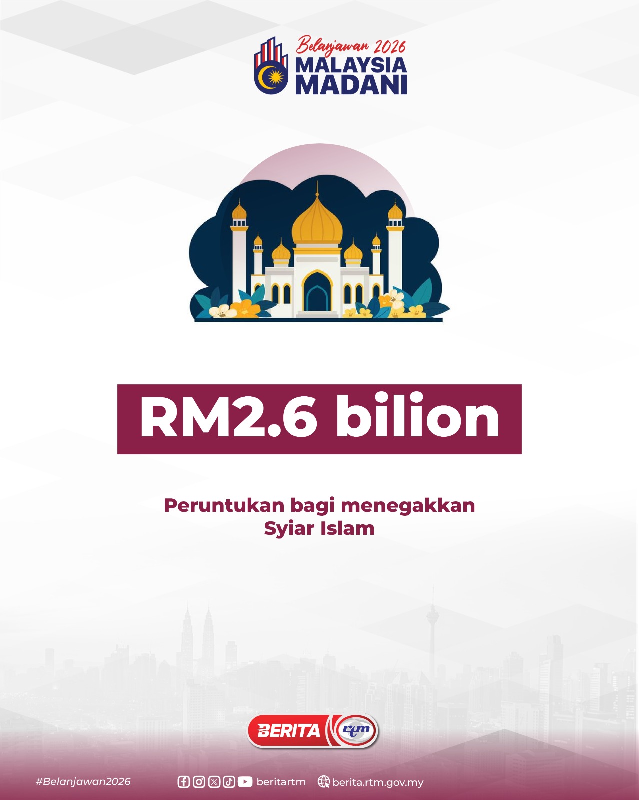 Utama Infografik PERUNTUKAN BAGI MENEGAKKAN SYIAR ISLAM PERUNTUKAN BAGI MENEGAKKAN SYIAR ISLAM10/10/2025 | 7:52 pmInfografik Kongsi berita Share on X (Twitter) Share on Facebook Share on WhatsApp Share on Telegram Berita sebelumnyaNEGARA AI MENJELANG 2030Berita seterusnyaPEMERKASAAN PENDIDIKAN AWAL KANAK-KANAK Makan Sihat, Hidup Sihat: Bagaimana Ajinomoto (Malaysia) Berhad Membentuk Gaya Hidup Lebih Sihat di Malaysia PALING POPULAR [TEST] Teh Tarik+Berita – Dekat, Senang & Masuk Akal! BES+ [Test: Infografik berita] Infografik