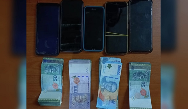 Turut dirampas, 14 buah telefon bimbit, wang tunai bernilai RM2,950 dan 4,600 rupiah Indonesia, sebuah kereta serta bot yang digunakan sebagai pengangkutan untuk menjalankan aktiviti berkenaan.