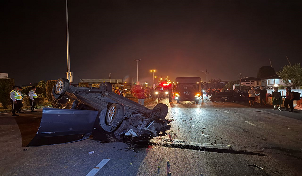 “Tidak lama selepas itu, sebuah kereta yang dipandu oleh seorang lelaki dari arah persimpangan bertingkat Kenyalang melanggar kereta yang terbabas di tengah jalan serta pemandu dan penumpang kereta kedua yang sedang memberikan bantuan.