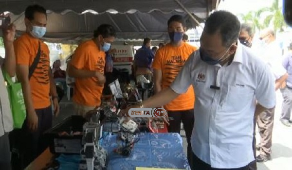 (Datuk Awang Hashim meninjau salah satu gerai pameran pada Program Jom Masuk TVET@KSM di Pendang)