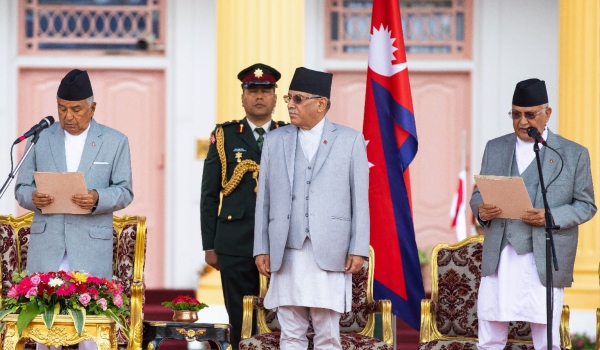 “Saya, KP Sharma Oli, atas nama negara dan rakyat, berjanji bahawa saya akan setia kepada perlembagaan… dan menunaikan kewajipan saya sebagai Perdana Menteri,” kata Oli, ketika Presiden Ram Chandra Poudel mengangkat sumpah di pejabat.