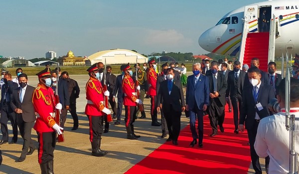 Pesawat khas yang membawa Perdana Menteri bersama delegasi mendarat kira-kira pukul 5.20 petang waktu Malaysia.