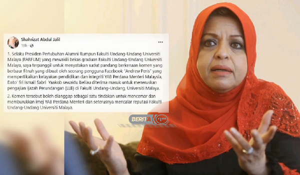 Perkara itu ditegaskan Presiden Pertubuhan Alumni Rumpun Fakulti Undang-Undang UM (PARFUM), Tan Sri Shahrizat Abdul Jalil menerusi satu kenyataan.