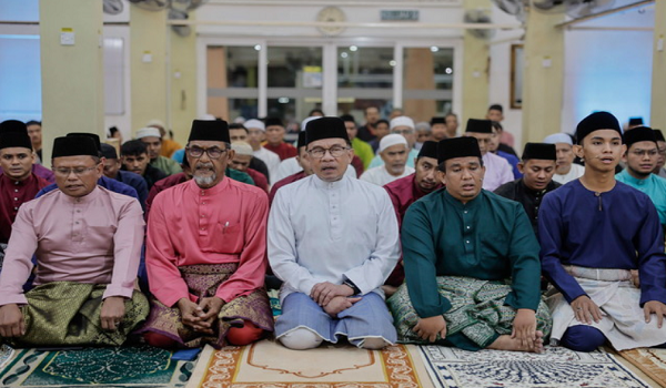 (Datuk Seri Anwar melaungkan takbir raya bagi sambutan Hari Raya Aidiladha/BERNAMA)