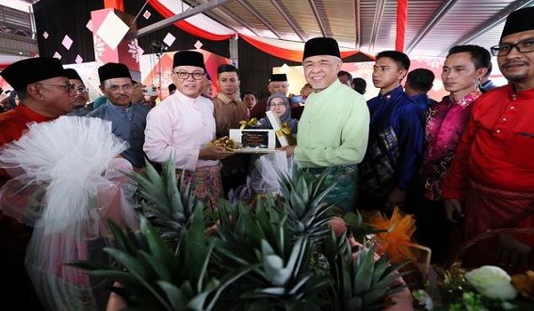 (Timbalan Perdana Menteri menerima cendera kenangan daripada Menteri Besar Pahang semasa Majlis Rumah Terbuka Aidilfitri Badan Perhubungan UMNO Negeri Pahang/BERNAMA)