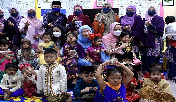 dengan kanak-kanak Taska Genius Perpaduan ketika melawat taska berkenaan/fotoBERNAMA)