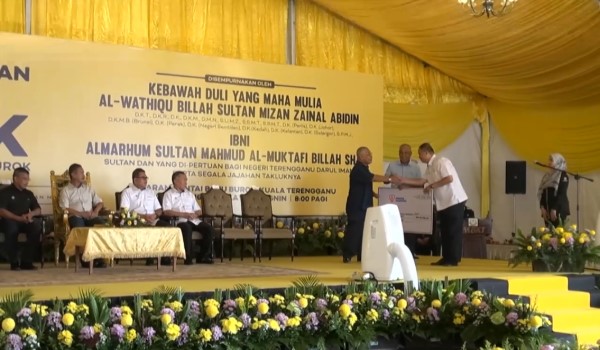 Sultan Mizan turun berkenan menyaksikan penyampaian sumbangan cek cura Petronas kepada Tabung Amanah Warisan Kuala Terengganu berjumlah RM297,500 dan penyampaian cek cura beberapa anak syarikat kerajaan negeri.