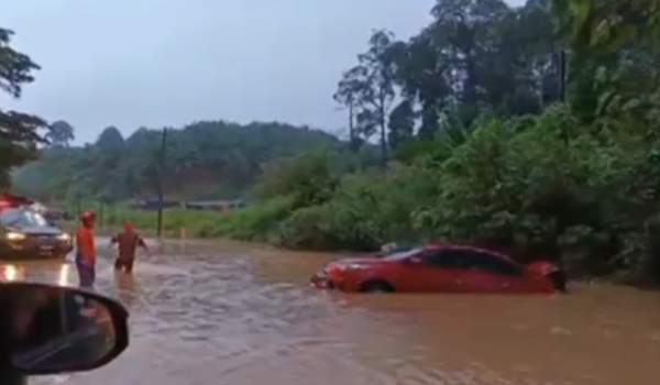 KUANTAN, 28 November – Seorang warga emas Orang Kelainan Upaya (OKU) bersama suami dan dua anaknya berjaya diselamatkan selepas kereta dinaiki mereka terbabas ke dalam longkang dipenuhi air banjir.